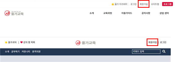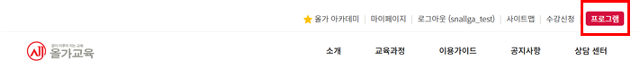 올가 아카데미는 해당 홈페이지 상단에 "올가아카데미" 를 누르면 자동으로 연결됩니다.